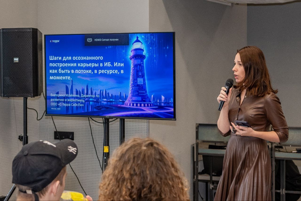 Студенты встретились с ведущими экспертами в области информационной безопасности, на которой директор по развитию и маркетингу «С-Терра СиЭсПи» Екатерина Исайкина поделилась советами по построению успешной карьеры.