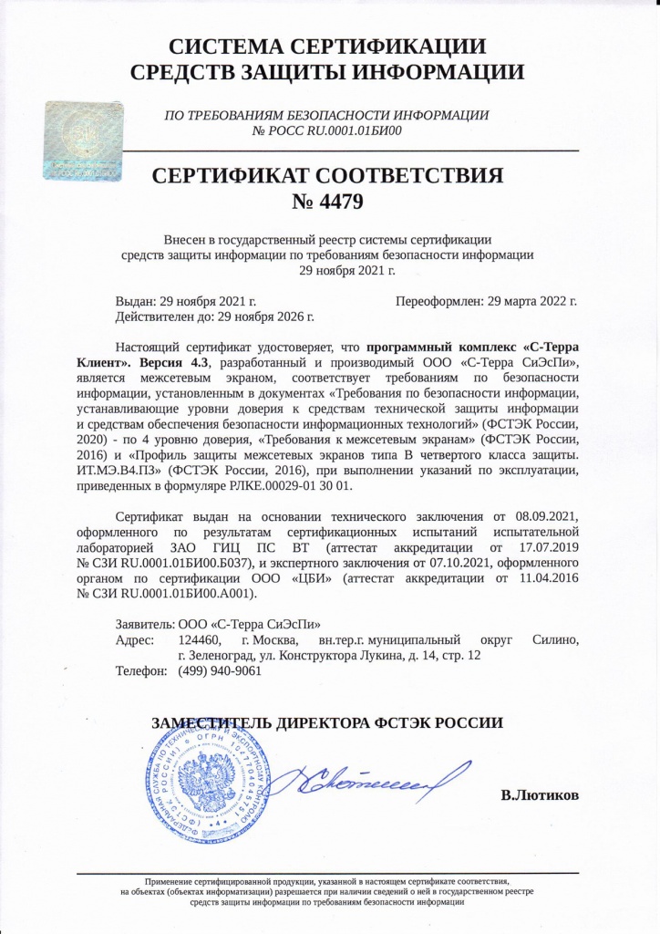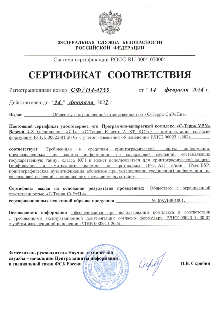 • Все продукты компании «С-Терра СиЭсПи» независимо от версии. Совместимость с С-Терра Шлюз 10G / С-Терра Шлюз 40G – только для защиты канала управления (в качестве Клиента управления).