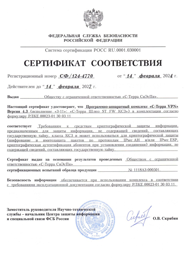 | С-Терра Шлюз 3000 Std | 1280 | 950 | 1000 |