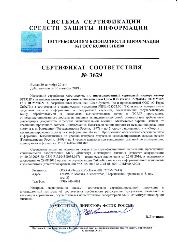 Интегрированный сервисный маршрутизатор ST2911Р – это сертифицированный ФСТЭК России продукт на базе маршрутизатора Cisco 2911R, выпускаемый компанией «С-Терра СиЭсПи».